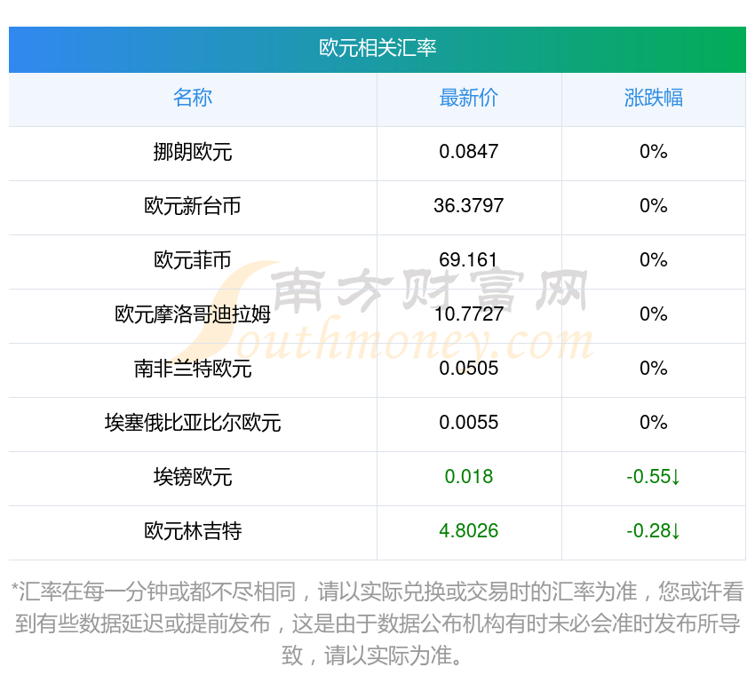 匯率在每一分鐘或都不盡相同,請以實際兌換或交易時的匯率為準(zhǔn),您或許看到有些數(shù)據(jù)延遲或提前發(fā)布,這是由于數(shù)據(jù)公布機(jī)構(gòu)有時未必會準(zhǔn)時發(fā)布所導(dǎo)致,請以實際為準(zhǔn)。
