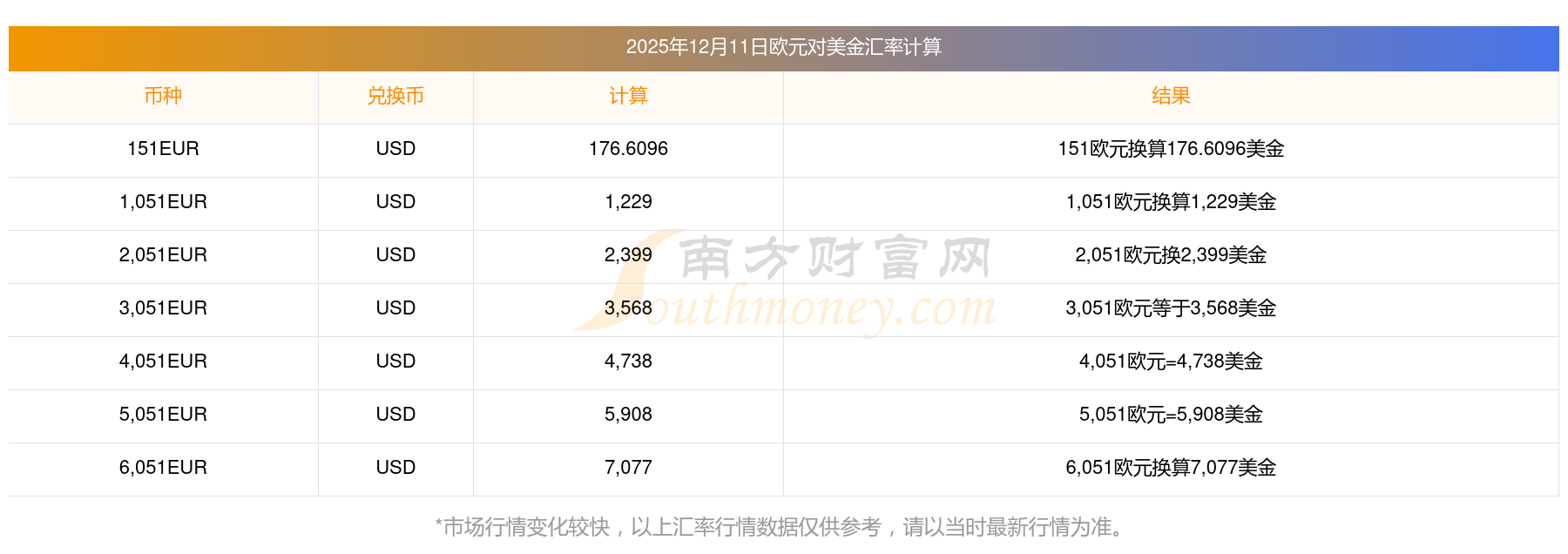 匯率今日:歐元兌換美金匯率(2025年12月11日)