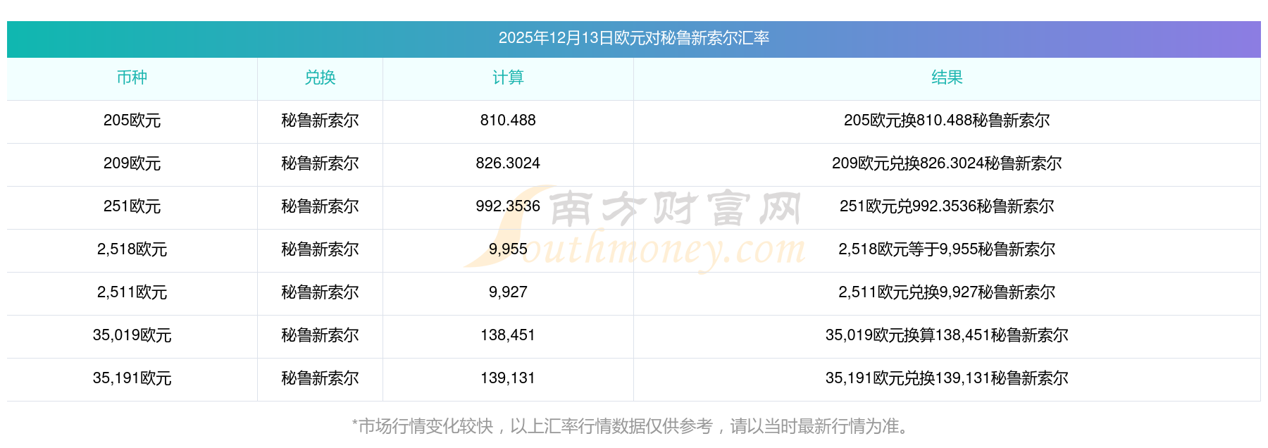 南方財富網(wǎng)為您提供歐元對秘魯新索爾匯率最新價格詳情。