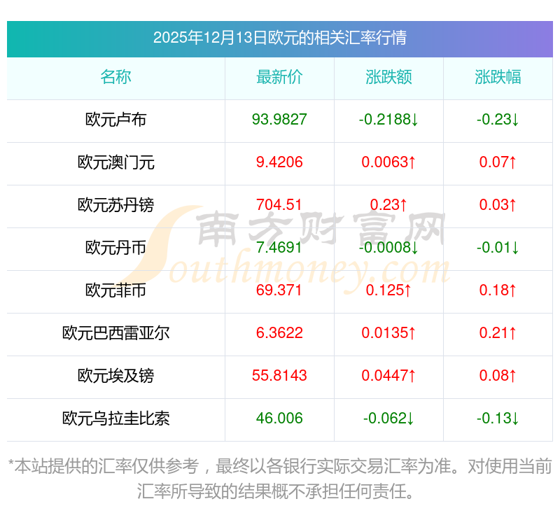 2025年12月13日歐元相關(guān)匯率查詢(xún)