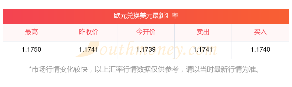 匯率在每一分鐘或都不盡相同,請以實際兌換或交易時的匯率為準,您或許看到有些數(shù)據(jù)延遲或提前發(fā)布,這是由于數(shù)據(jù)公布機構(gòu)有時未必會準時發(fā)布所導(dǎo)致,請以實際為準。