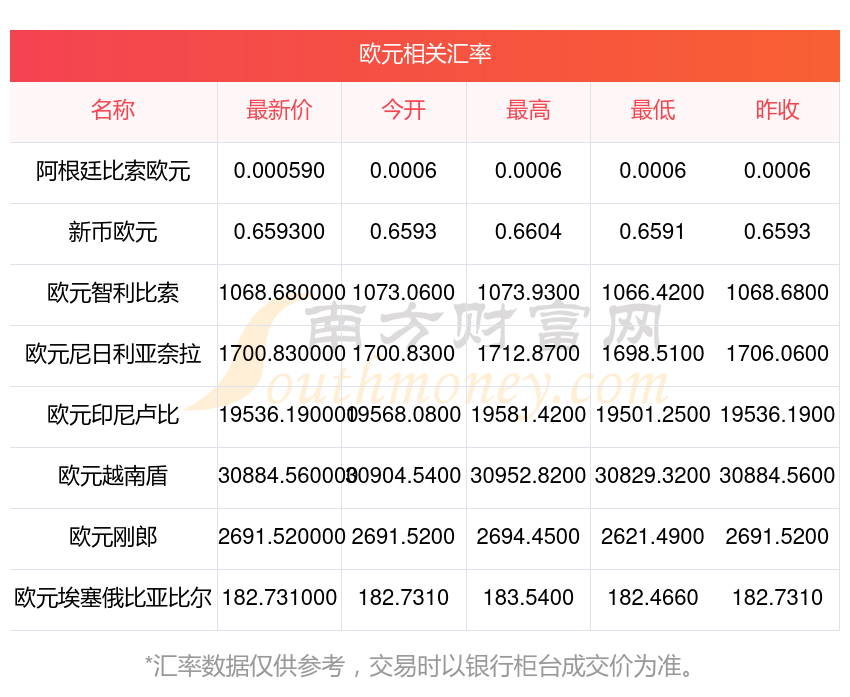 南方財富網(wǎng)為您提供歐元對澳元匯率最新價格詳情。