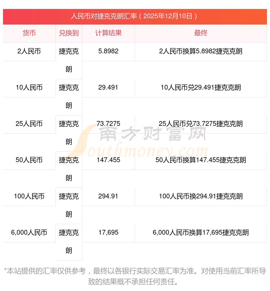 今天人民幣換成捷克克朗匯率中間價是多少?146人民幣換多少?2025/12/10