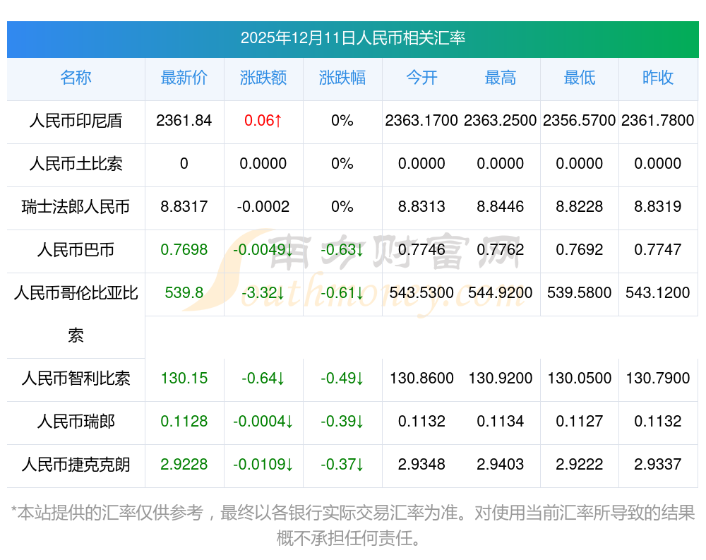 根據(jù)2025年12月11日匯率,人民幣兌換捷克克朗匯率最新2.922800,今開2.9348,昨收2.9337,最高2.9403,最低2.9222。