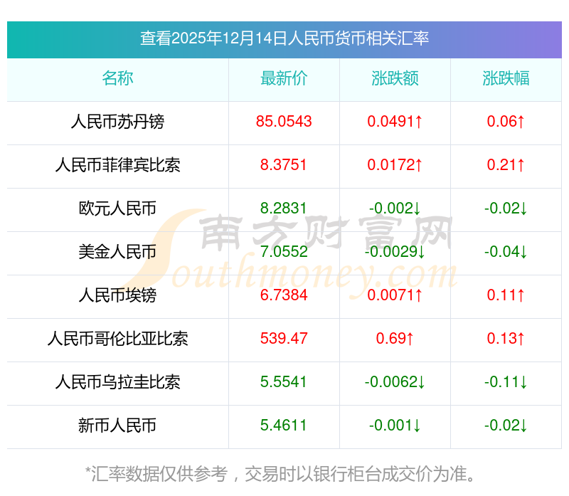 2025年12月14日人民幣相關匯率查詢