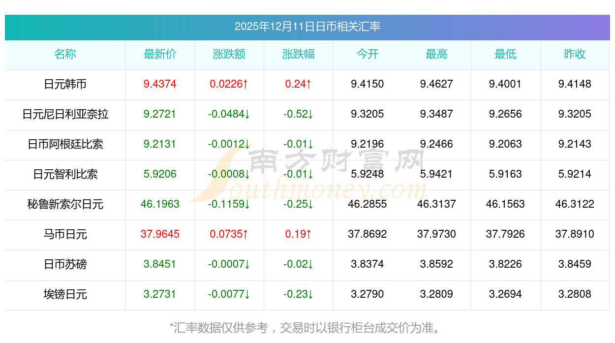 2025年12月11日日幣相關(guān)匯率查詢(xún)
