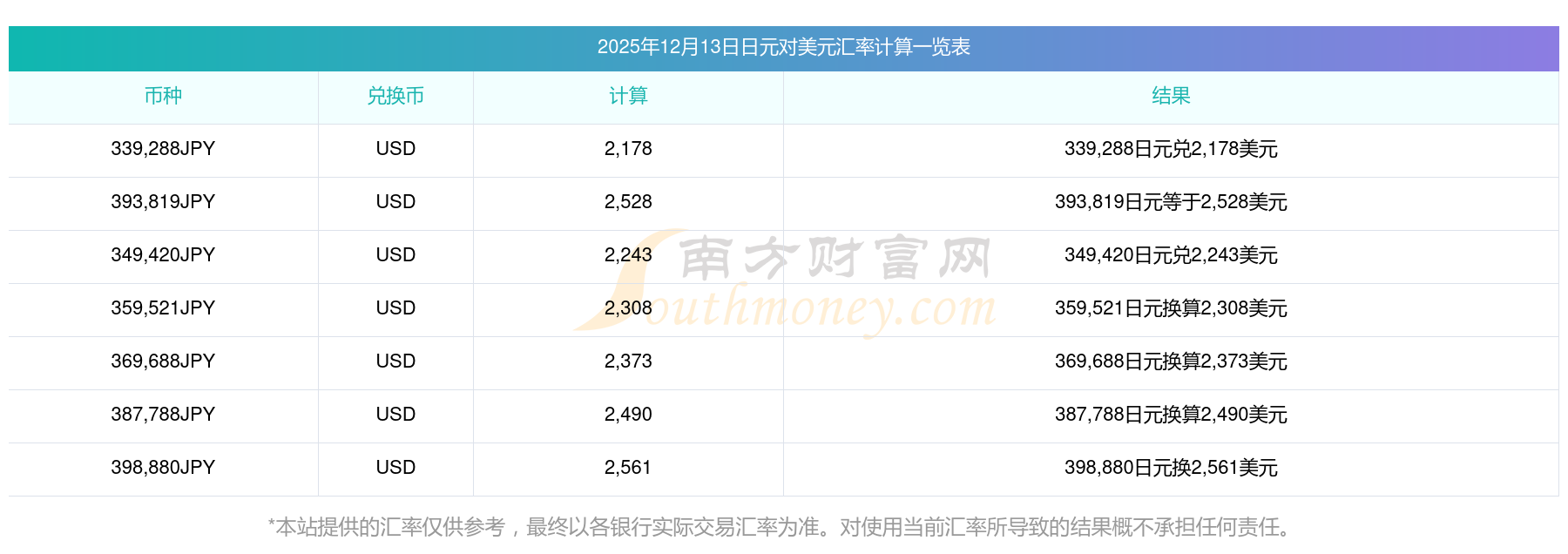 現(xiàn)在1日元與美元的匯率是多少?2025-12-13