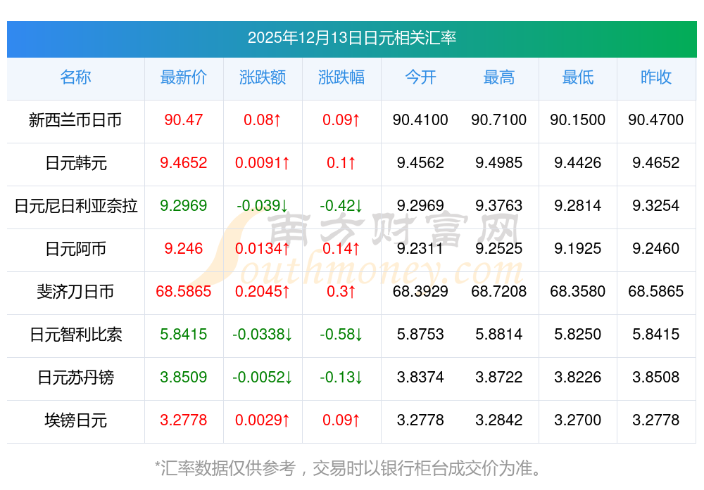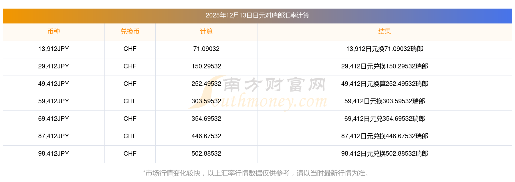 日元對(duì)瑞郎匯率走勢(shì),今日日元對(duì)瑞郎匯率是多少?2025-12-13