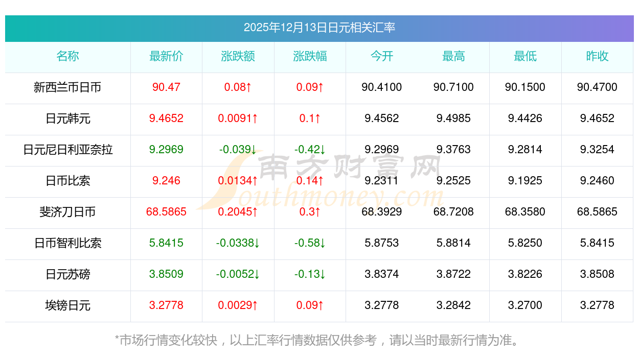 2025年12月13日日元相關(guān)匯率查詢