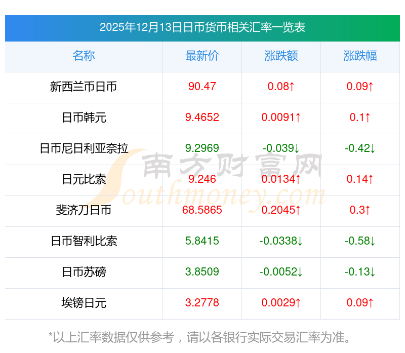 2025年12月13日日幣相關(guān)匯率查詢(xún)