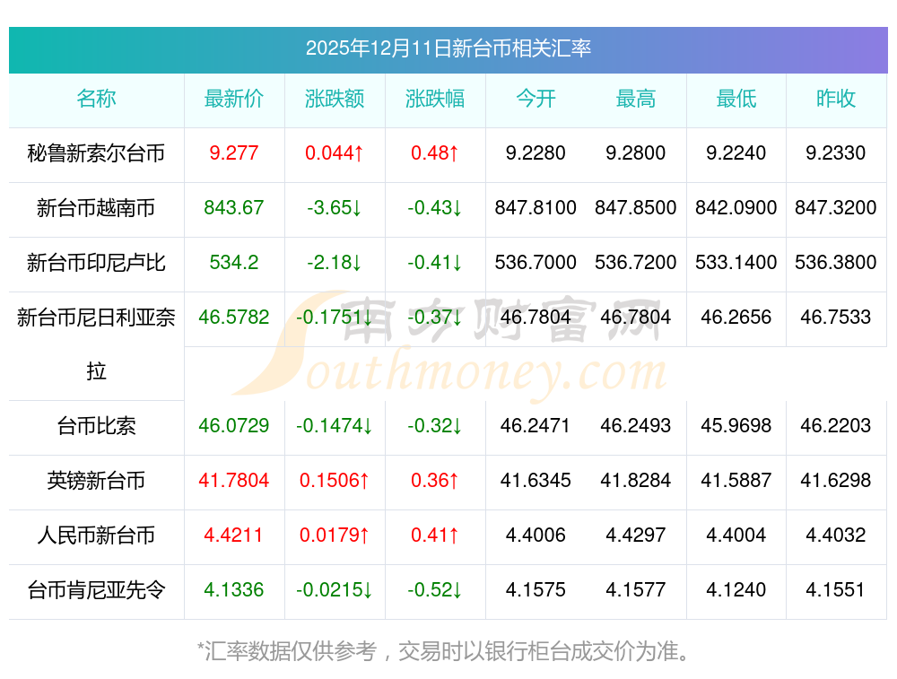 2025年12月11日新臺(tái)幣相關(guān)匯率查詢