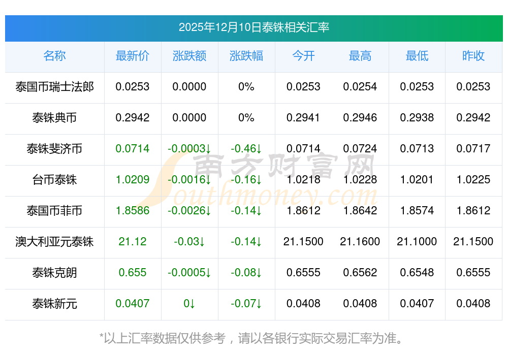 2025年12月10日泰銖相關(guān)匯率查詢