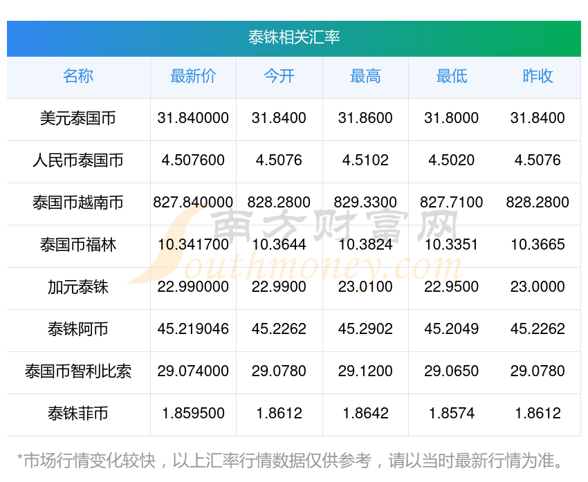 南方財富網(wǎng)為您提供泰銖對尼日利亞奈拉匯率最新價格詳情。