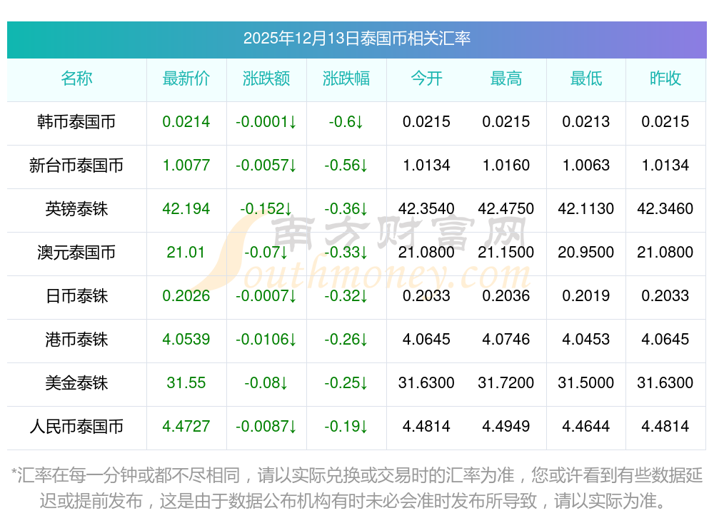 2025年12月13日泰國幣相關(guān)匯率查詢
