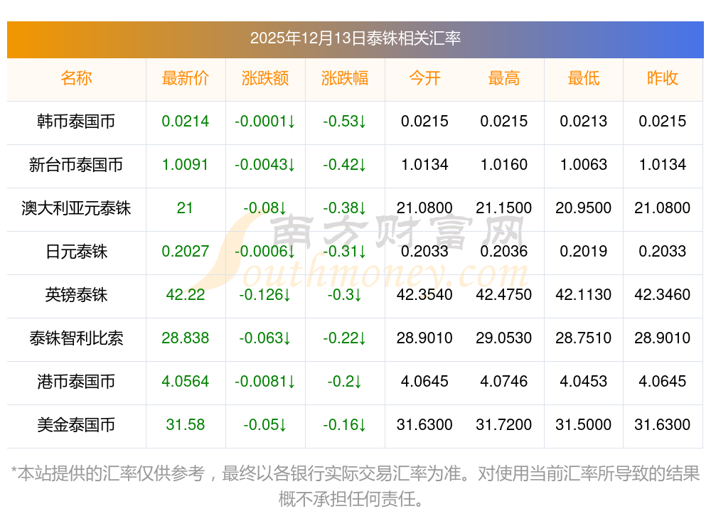 南方財(cái)富網(wǎng)為您提供泰銖對(duì)雷亞爾匯率最新價(jià)格詳情。