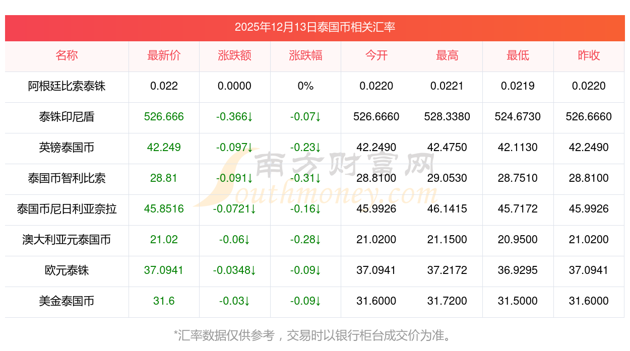 2025年12月13日泰國幣相關(guān)匯率查詢
