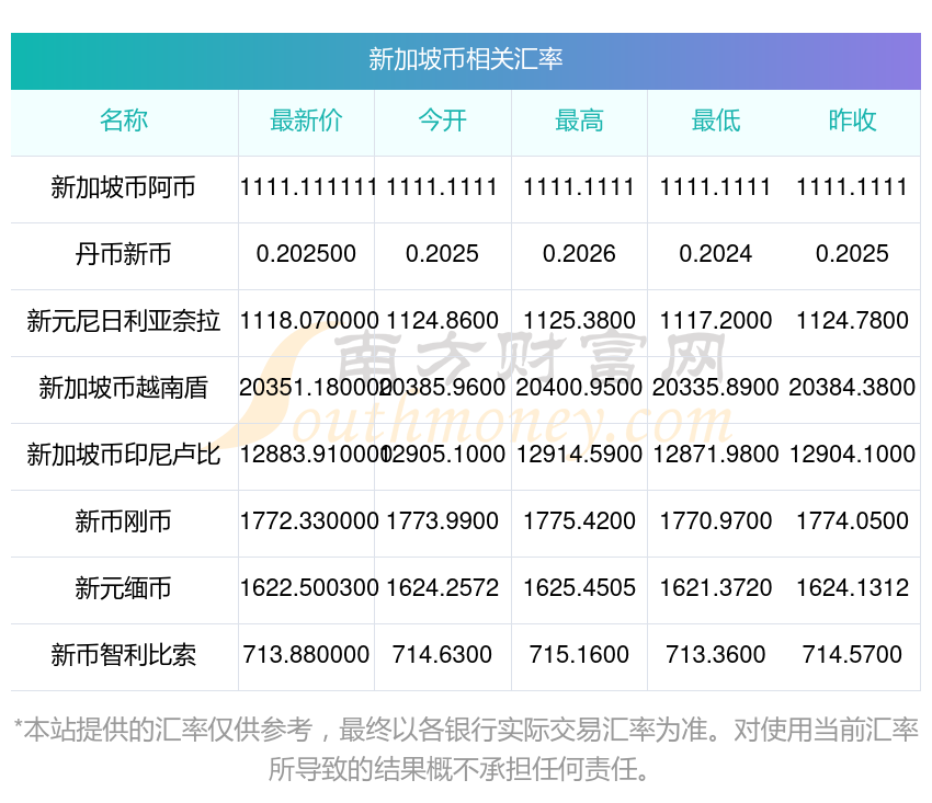 2025年12月11日新加坡幣相關(guān)匯率查詢