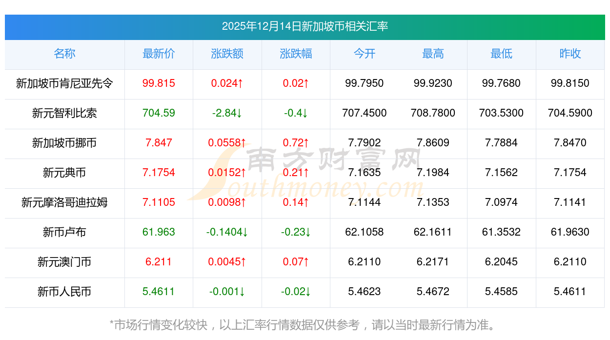 2025年12月14日新加坡幣相關匯率查詢