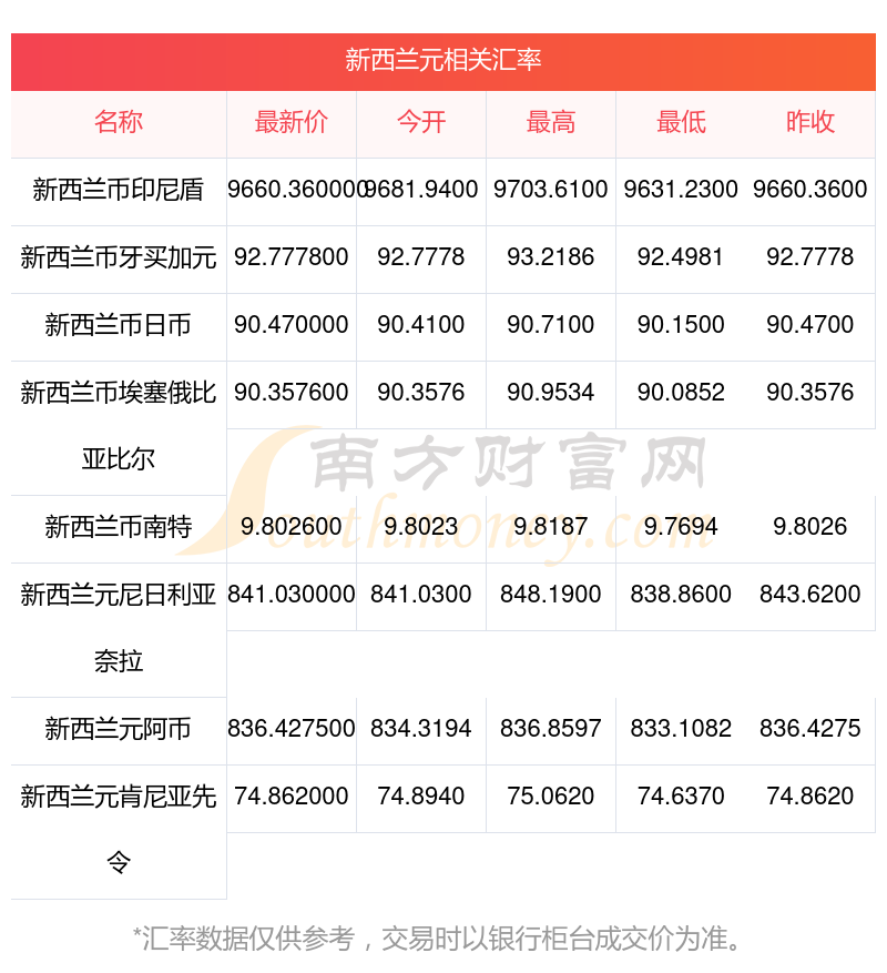 2025年12月13日新西蘭元相關(guān)匯率查詢