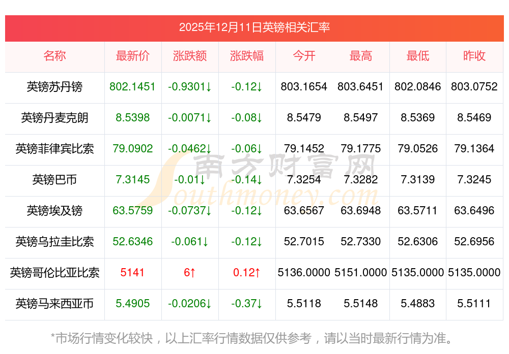 2025年12月11日英鎊相關(guān)匯率查詢