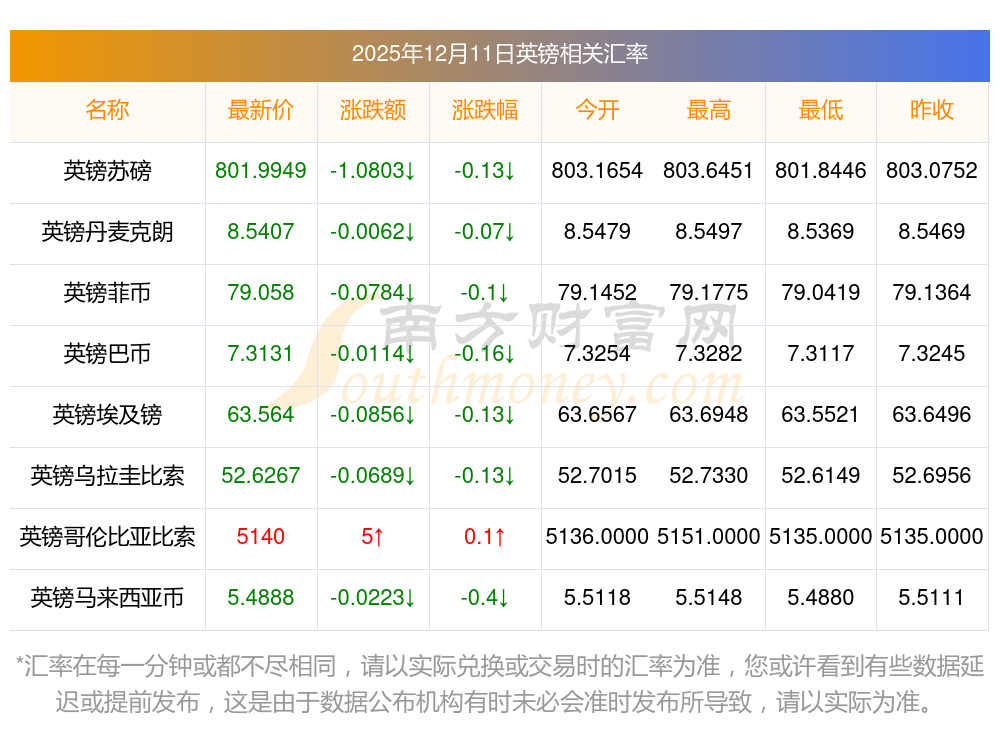 根據(jù)2025年12月11日匯率計算,GBP兌換RUB匯率最新價104.616400:今日開價104.7338,昨日收價104.7220,最高價104.7964,最低價104.5616。