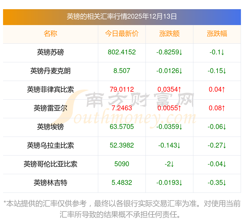 2025年12月13日英鎊相關(guān)匯率查詢