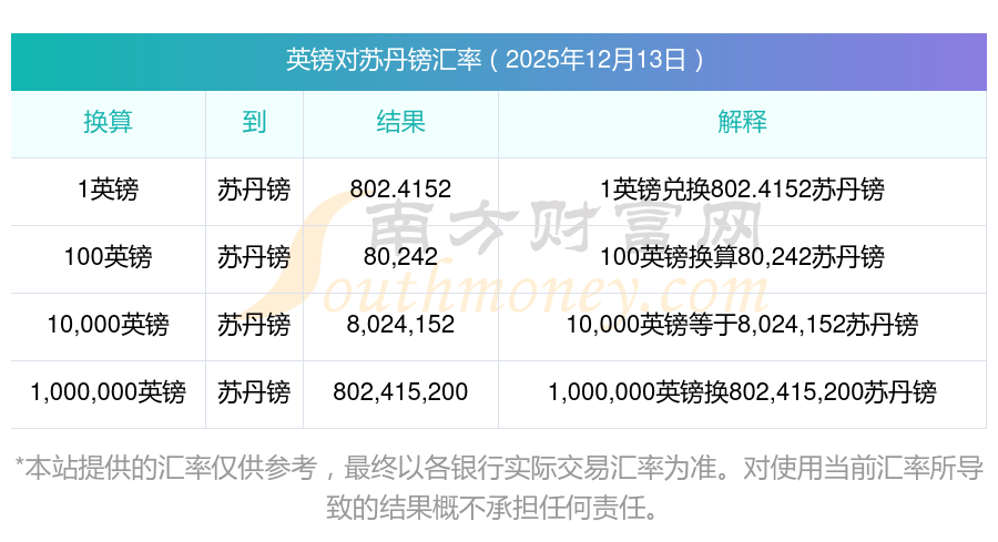 今天英鎊兌換蘇丹鎊匯率價是多少?外匯匯率兌換查詢