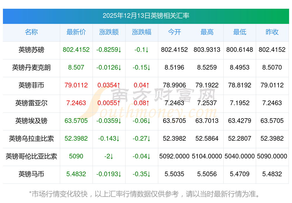 2025年12月13日英鎊相關(guān)匯率查詢(xún)