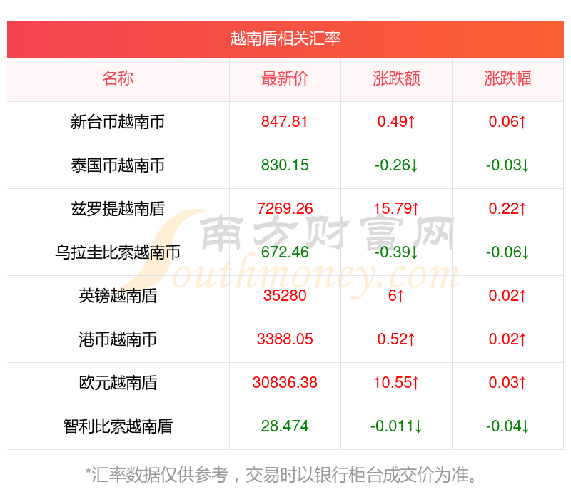 南方財富網(wǎng)為您提供越南盾對瑞士法郎匯率最新價格詳情。
