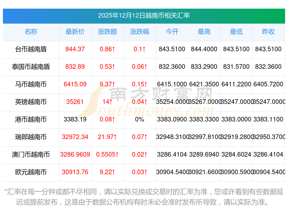 根據(jù)2025年12月12日匯率計算,越南幣兌換印尼盧比匯率最新價0.633200,今開價0.0000,昨收價0.6332,最高價0.0000,最低價0.0000。