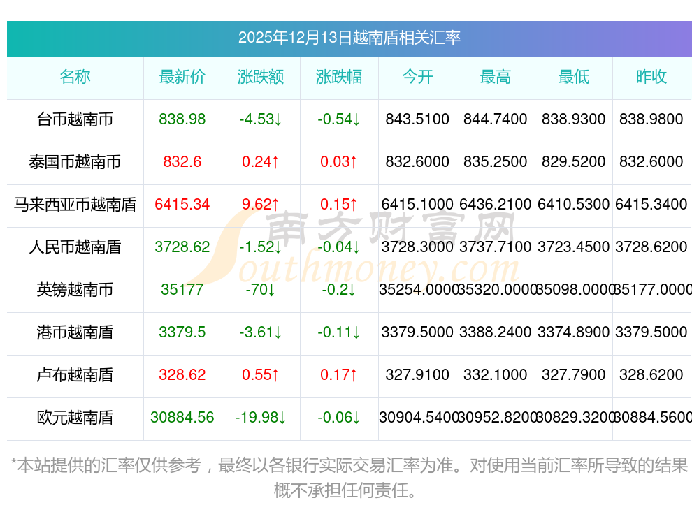 根據(jù)2025年12月13日匯率計(jì)算,VND兌換KES匯率最新價0.004902:今日開價0.0049,昨日收價0.0049,最高價0.0049,最低價0.0049。