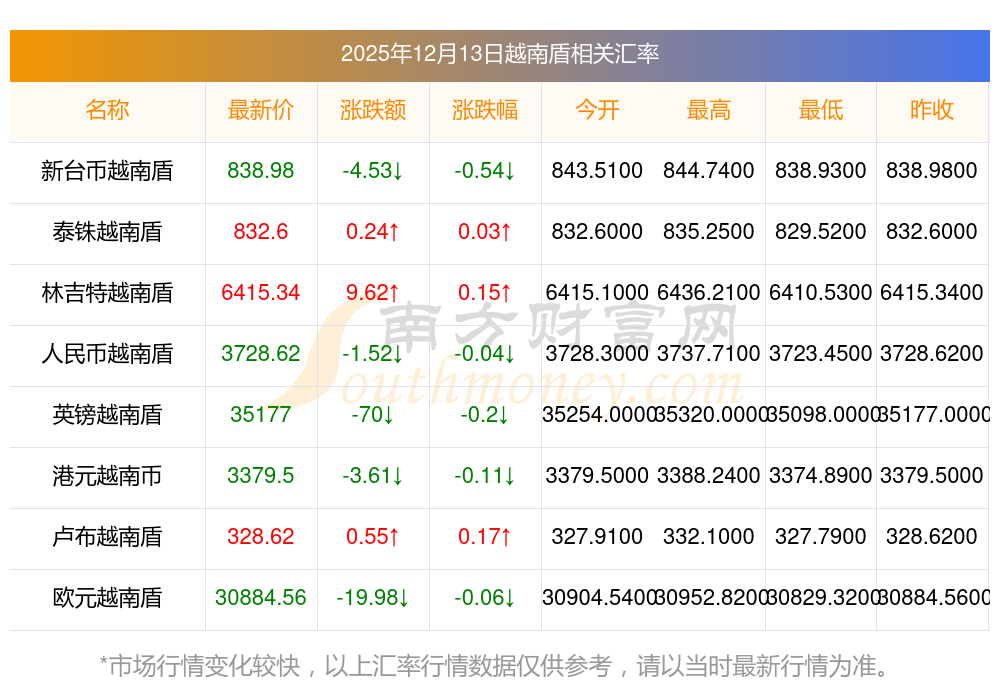 2025年12月13日越南盾相關(guān)匯率查詢(xún)