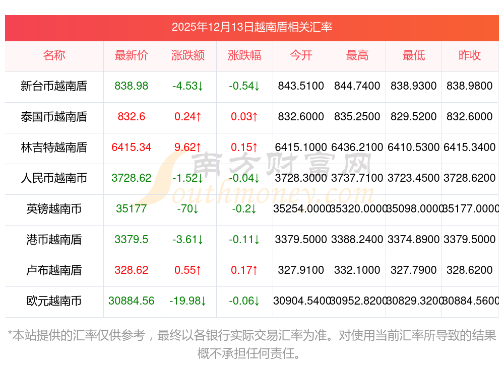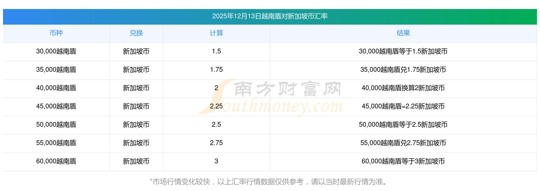 南方財富網(wǎng)為您提供越南盾對新加坡幣匯率最新價格詳情。