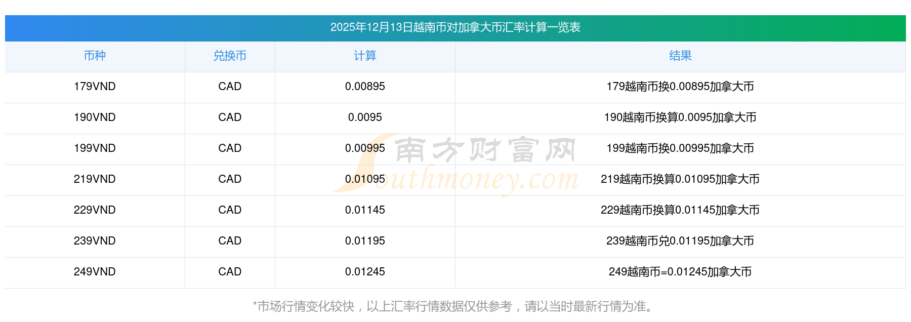 2025年12月13日越南幣兌換加拿大幣匯率是:5.0E-5