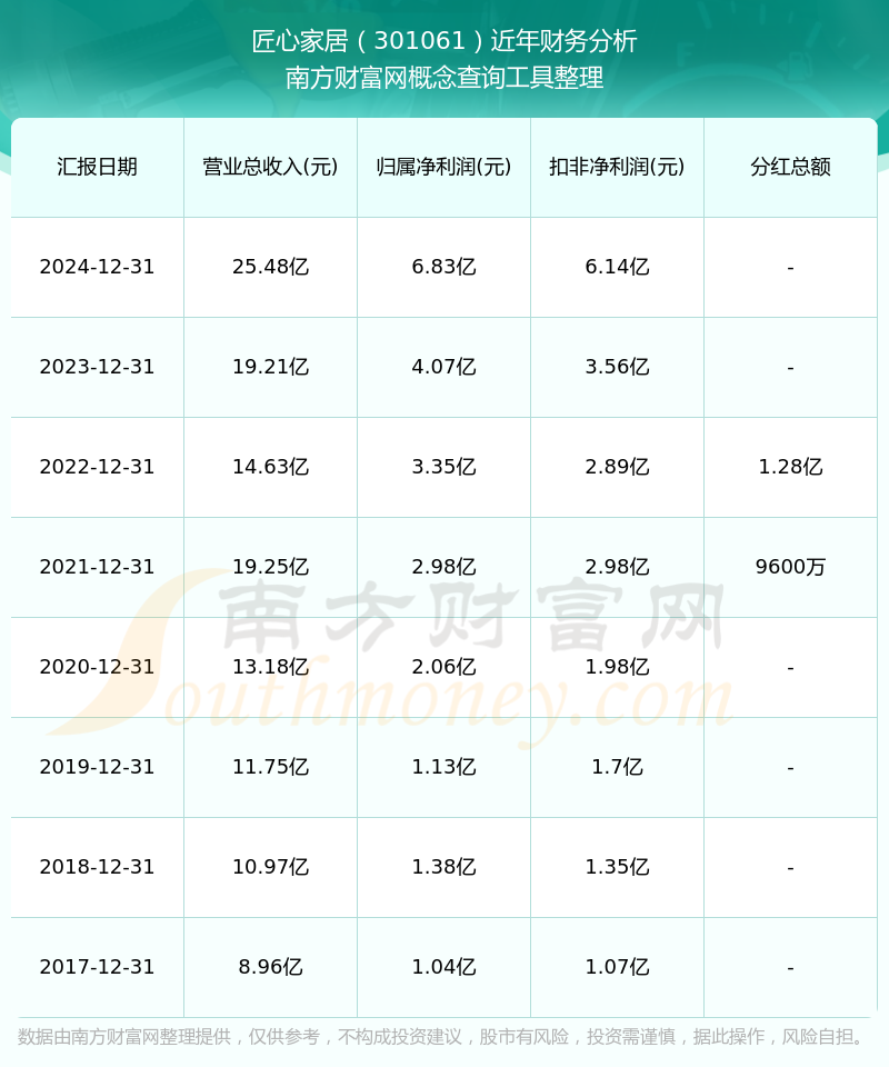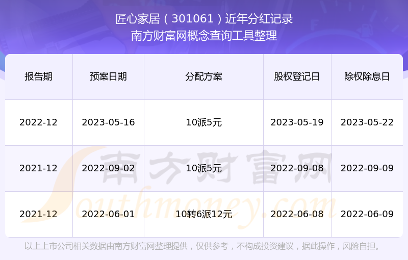 匠心家居歷年分紅派息情況如下表所示: