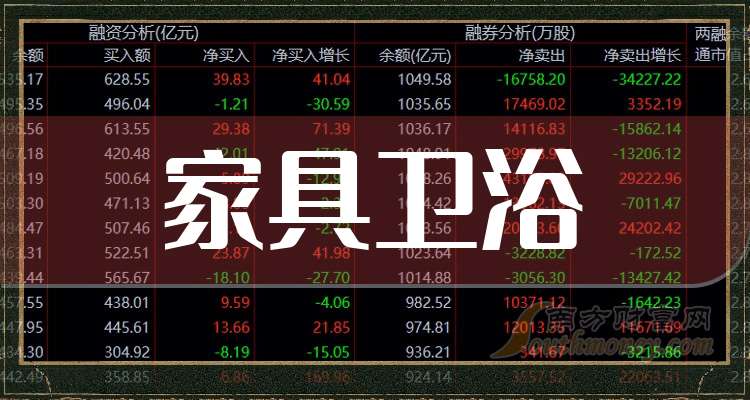 據(jù)南方財富網(wǎng)概念查詢工具數(shù)據(jù)顯示,家具衛(wèi)浴上市公司龍頭有: