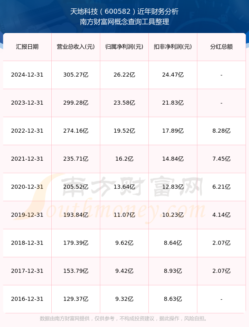 天地科技?xì)v年分紅派息情況如下表所示: