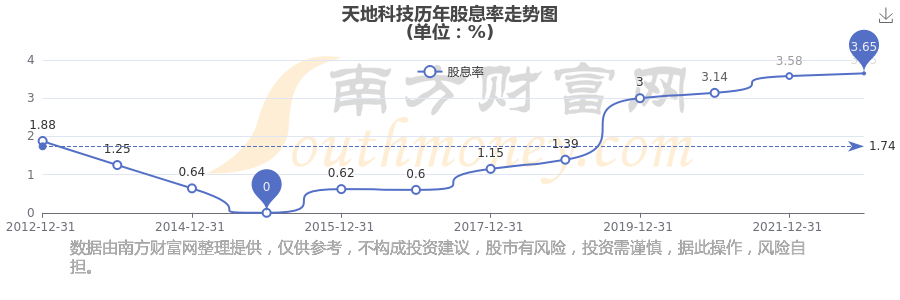 天地科技?xì)v年股息率走勢如下圖: