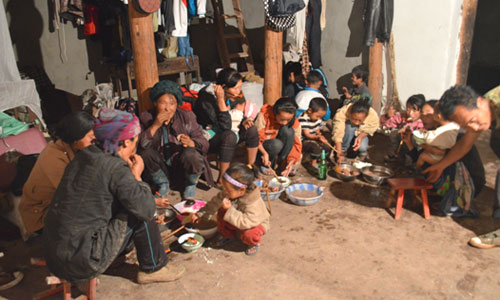 對于偏遠(yuǎn)山區(qū)的貧困與落后,雖然隊員們早有心理準(zhǔn)備,但實際到了兩河口鎮(zhèn),當(dāng)?shù)仄D苦的條件還是遠(yuǎn)遠(yuǎn)超出了這群在大城市里生活慣了的年輕人的想象。沒有網(wǎng)絡(luò),白天斷電,有時為了發(fā)送一條短信打一個電話需要走很遠(yuǎn)的路才會有信號。飲食也是一大挑戰(zhàn),實踐隊的伙食是清一色的土豆,而且一天只有兩頓土豆,這是當(dāng)?shù)氐牧?xí)俗。沒有桌子,所有人就在地上吃,沒有筷子就用手。煮的土豆吃膩了就吃烤土豆,扒皮后蘸點調(diào)料,吃得滿嘴滿手黑乎乎的。對于這樣的飲食方式,隊員們一開始的確不適應(yīng),覺得有點落后和不衛(wèi)生,但面對彝家人的熱情好客,隊員們也就入鄉(xiāng)隨俗,和彝家人一起享用起大山里的土豆來。為了感謝隊員們的付出,彝家人偶爾也會給隊員們做蕎麥餅換換口味。