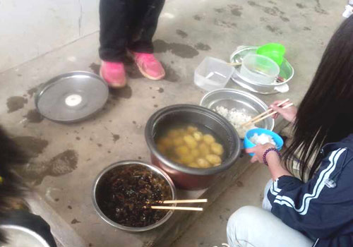 實踐隊員的午飯:咸菜絲、水煮土豆、米飯