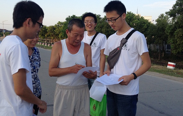 湖北大學“未來力量”暑期社會實踐團隊是人民網(wǎng)強國社區(qū)“綠色新生力”全國大學生環(huán)保公益項目大賽的參賽團隊之一,與眾多參賽團隊一樣,他們緊扣環(huán)保主題開展暑期實踐,并在大學生論壇實時播報活動進展和記錄心得體會。團隊通訊員在活動結(jié)束后寫下自己的感受:“苦盡甘來,我們得到了我們想要的,也有了豐富的收獲。這些日子一起走過,我們曾頂著太陽的暴曬,在馬路上不停的奔跑;也曾在瓢潑的大雨中相互撐傘遮擋;也圍坐在桌子旁邊一起吃著工作餐,開心地談天說地。每一個畫面,都如此珍貴。一路上,我們收獲知識,也收獲感動;收獲歡笑,也收獲回憶。將近十天的時間,我們齊心協(xié)力,用自己的努力,畫上完美句點!保▽嵙暽 陳晨)