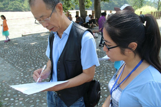 “綠色新生態(tài)”團(tuán)隊(duì)的成員來(lái)自四川農(nóng)業(yè)大學(xué)資源與環(huán)境學(xué)院,此次實(shí)踐的主題是“宣環(huán)保足探石棉縣,揚(yáng)生態(tài)共筑中國(guó)夢(mèng)”。隊(duì)員們前往災(zāi)后重建縣城——雅安市石棉縣開(kāi)始為期8天的征程:走訪石棉縣下屬各鄉(xiāng)鎮(zhèn),發(fā)放調(diào)查問(wèn)卷,采訪相關(guān)政府部門(mén),參觀革命紀(jì)念館等。雖然實(shí)踐進(jìn)展的不是一帆風(fēng)順,但隊(duì)員們?nèi)詧?jiān)持不懈,不斷反思自我。“今天的實(shí)踐帶給我最多的就是震撼和感動(dòng),在分發(fā)便利貼時(shí)遇到了很多困難,但克服這些困難之后會(huì)有一種深深的滿(mǎn)足感。飽含濃郁的紅色文化氛圍的安順是我們小隊(duì)宣傳‘中國(guó)夢(mèng)’的絕佳之地,我們還要更加努力!标(duì)員胡瀚文在中國(guó)工農(nóng)紅軍強(qiáng)渡大渡河紀(jì)念館做環(huán)保宣傳時(shí)這樣告訴記者。另一位隊(duì)員郭瑀說(shuō):“能深入鄉(xiāng)村進(jìn)行面對(duì)面的了解對(duì)我來(lái)說(shuō)是一個(gè)全新的經(jīng)歷,很新鮮也很有意義。雖然實(shí)踐的時(shí)候很累,但還是有一股力量支撐著自己堅(jiān)持下去,我們的成員們都很棒,相信我們能取得好的成果!