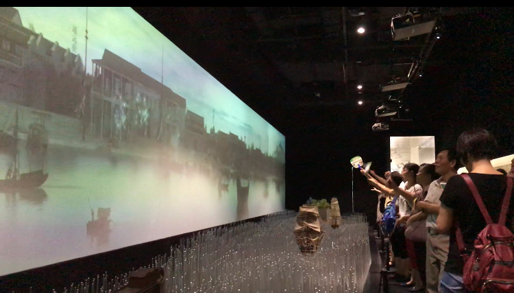 三維影片《千年羊城》,讓觀眾在不到10分鐘內(nèi),速覽城建史上的重要事件,跨越千年印記,感受廣州前世今生;“廣州港與廣州府城圖”數(shù)字化動(dòng)態(tài)長(zhǎng)卷,再現(xiàn)19世紀(jì)珠江兩岸的繁華盛景,堪稱廣州版“清明上河圖”;45×56米的全域沙盤,讓你在山脈、水脈之中,縱覽7434平方公里的廣州,配合全新打造的城市規(guī)劃宣傳片,零距離感受廣州城市格局和未來發(fā)展藍(lán)圖……