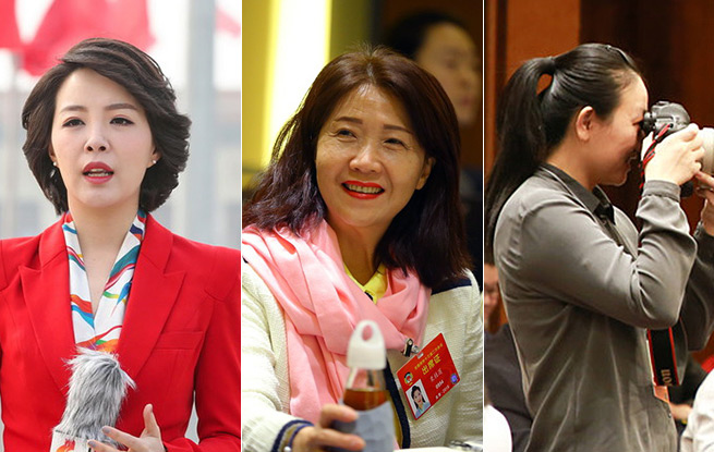 今年兩會期間,女代表委員和女記者構(gòu)筑起了美麗的風景線。(人民網(wǎng))
