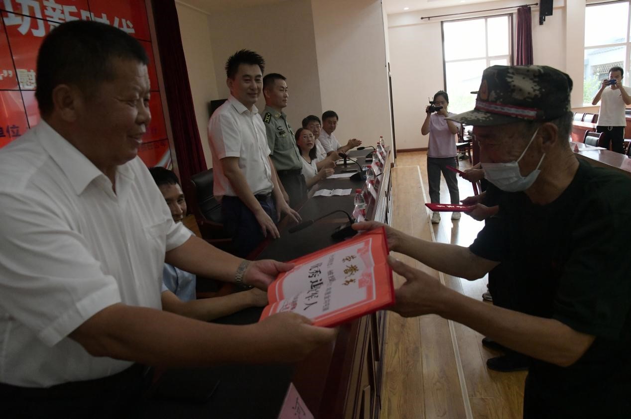 8月1日下午,灤平縣金溝屯鎮(zhèn)下營(yíng)子村聯(lián)合愛心企業(yè)中國(guó)郵政儲(chǔ)蓄銀行灤平支行、灤平盛陽(yáng)村鎮(zhèn)銀行金溝屯支行和承德久財(cái)農(nóng)牧開發(fā)有限責(zé)任公司共同舉辦了“退伍不褪色 建功新時(shí)代”第二屆“八一”慰問退役軍人座談會(huì);顒(dòng)現(xiàn)場(chǎng),大家歡聚一堂,共同慶祝中國(guó)人民解放軍建軍95周年,共敘魚水深情,并為優(yōu)秀退役軍人頒發(fā)榮譽(yù)證書。 王海琦 郎朗 攝