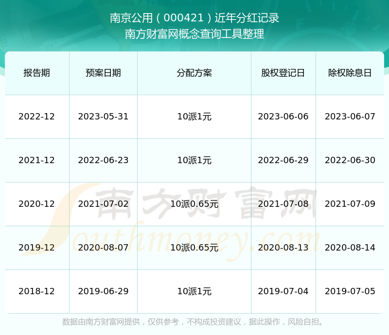 南京公用最新一次公布的分紅方案為10派1元。本次權(quán)益分派股權(quán)登記日為2023年6月6日,除權(quán)除息日為2023年6月7日,派息日為2023年6月7日。
