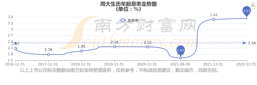 周大生最新一次公布的分紅方案為10派6元。本次權(quán)益分派股權(quán)登記日為2023年6月2日,除權(quán)除息日為2023年6月5日,派息日為2023年6月5日。