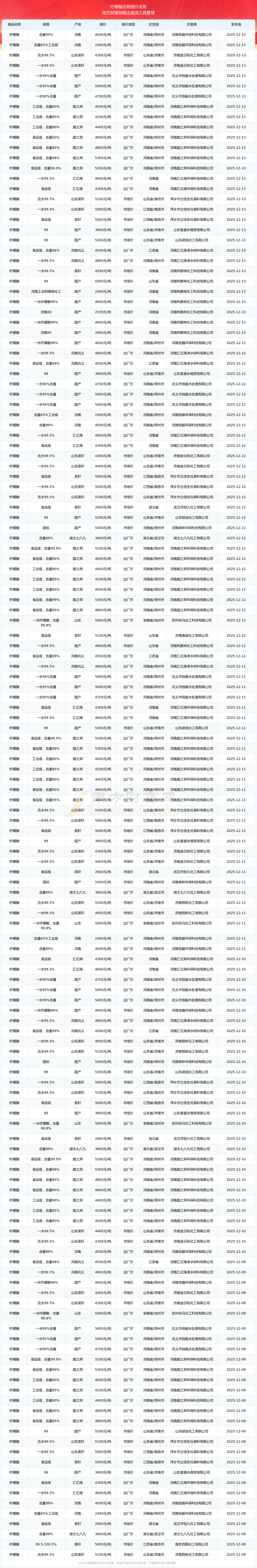 檸檬酸最新報(bào)價(jià)