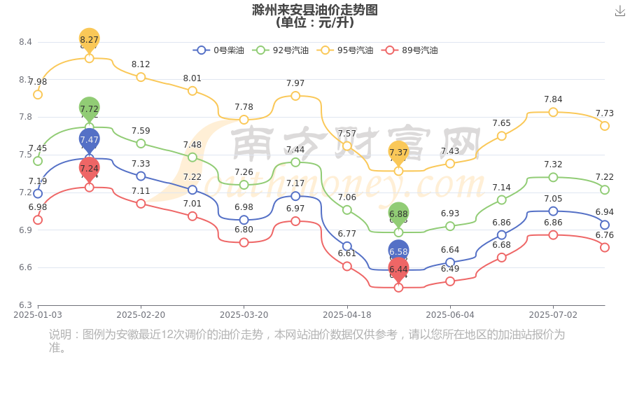 8月26日滁州來安縣95號(hào)汽油歷史油價(jià)走勢(shì)圖