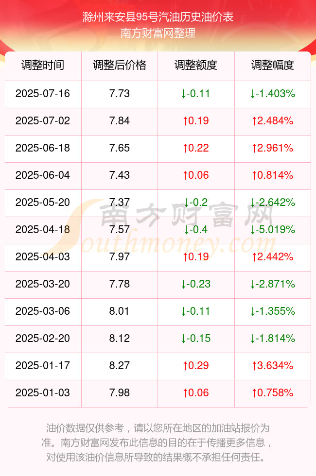 8月26日滁州來安縣95號(hào)汽油歷史油價(jià)一覽表